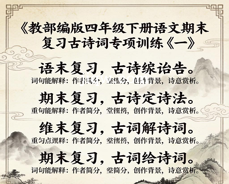 标题:人教部编版四年级下册语文期末复习古诗词专项训练(一)(供打印 4页)
