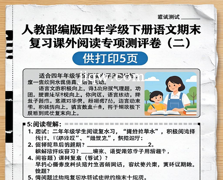 标题:人教部编版四年级下册语文期末复习课外阅读专项测评卷(二)(供打印 5页)