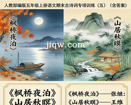 标题:人教部编版五年级上册语文期末古诗词专项训练(五)(含答案)