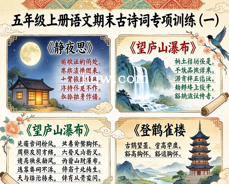 极全网】人教部编版五年级上册语文期末古诗词专项训练(一)(供打印 6页)