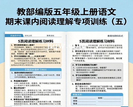 标题:人教部编版五年级上册语文期末课内阅读理解专项训练(五)(供打印 5页)