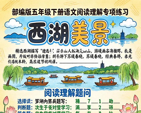 标题:五年级下册语文试题-阅读理解专项练习 部编版 附答案