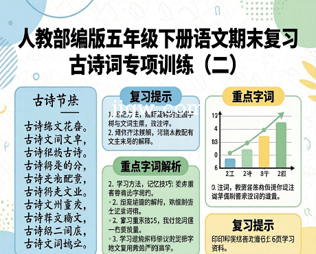 标题:人教部编版五年级下册语文期末复习古诗词专项训练(二)(供打印 6页)