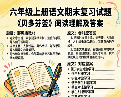 标题:六年级上册语文期末阅读理解复习试题4(部编版,含答案)