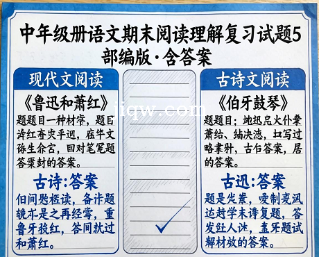 六年级上册语文期末阅读理解复习试题5(部编版,含答案)-极全网