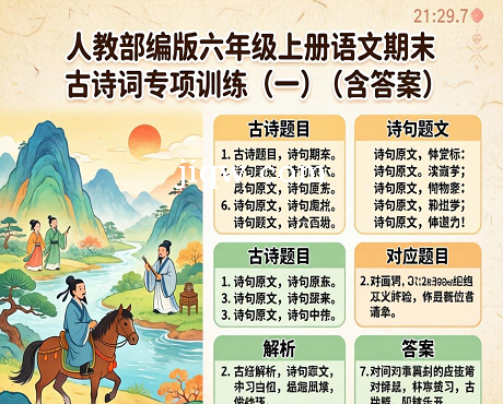人教部编版六年级上册语文期末古诗词专项训练(一)(含答案)-极全网