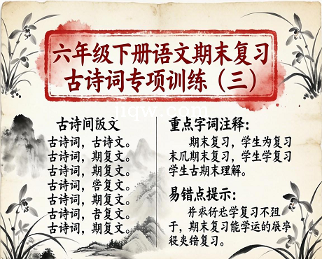 标题:人教部编版六年级下册语文期末复习古诗词专项训练(三)(供打印 5页)