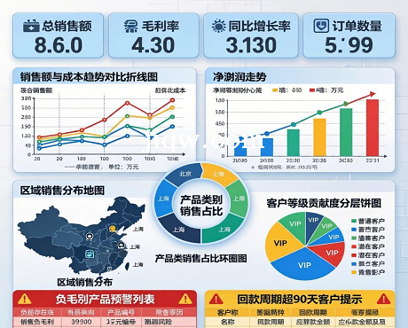 极全网】财务销售数据可视化看板表