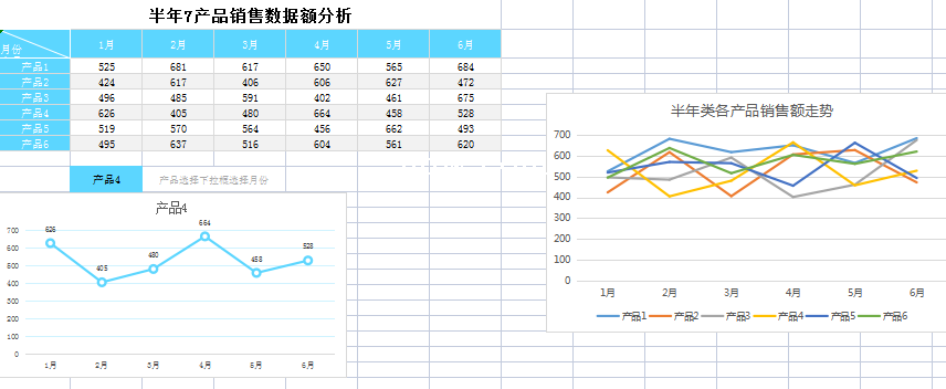 动态图表分析半年内几种产品销售额走势-表格-极全网