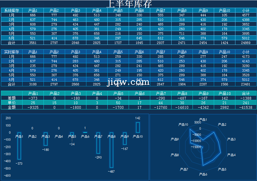 上半年库存Excel模板 -图表-极全网