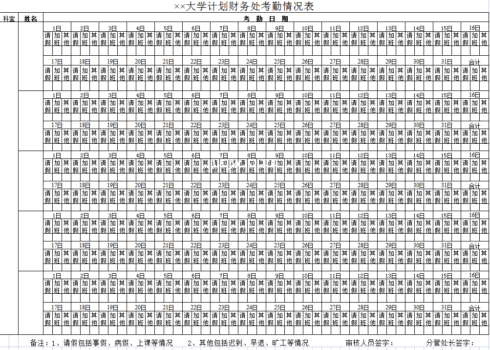 大学计划财务处考勤情况表-Excel表格
