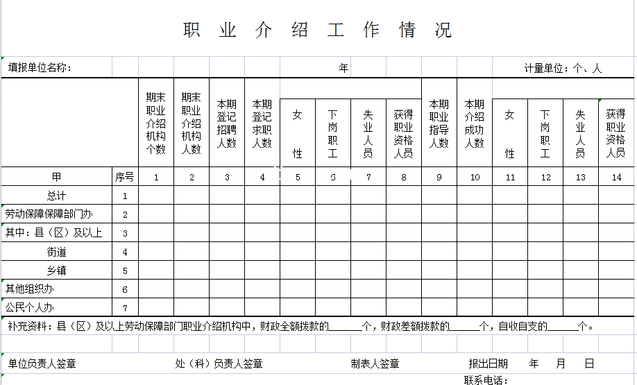标题:职业介绍工作情况表-Excel表格