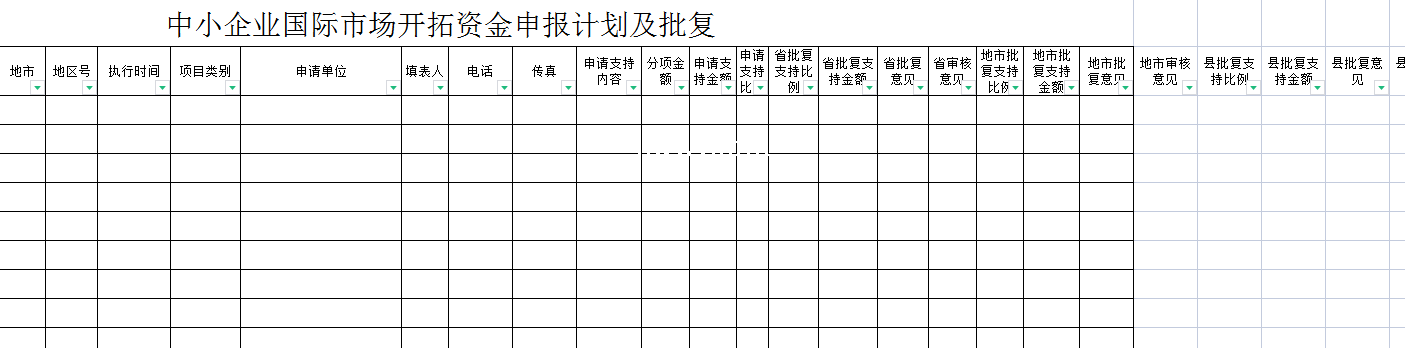 标题:中小企业国际市场开拓资金申报计划及批复-Excel表格