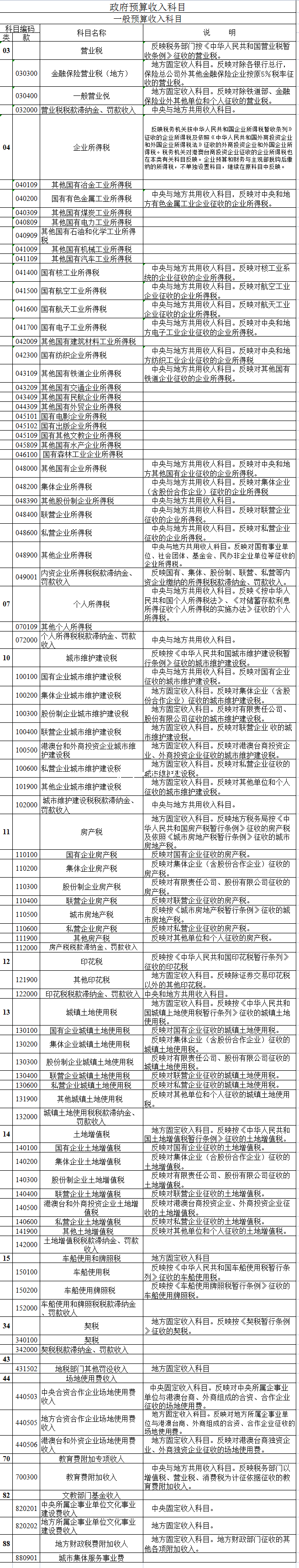 标题:政府预算收入科目-Excel表格