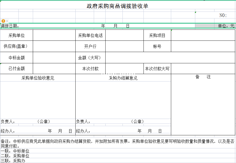 标题:政府采购商品调拨验收单-Excel表格