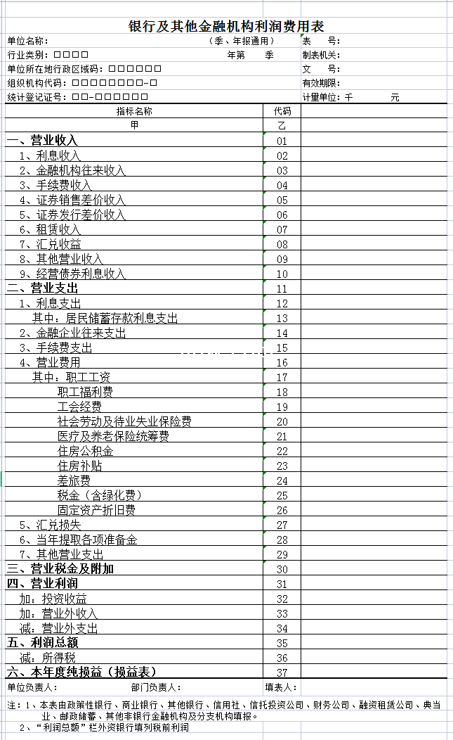 标题:银行及其他金融机构利润费用表-Excel表格