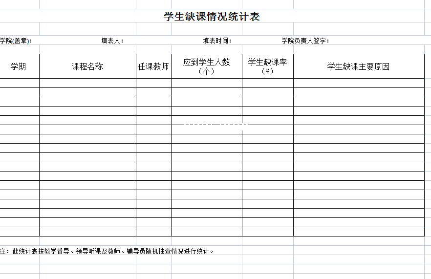 标题:学生缺课情况统计表-Excel表格