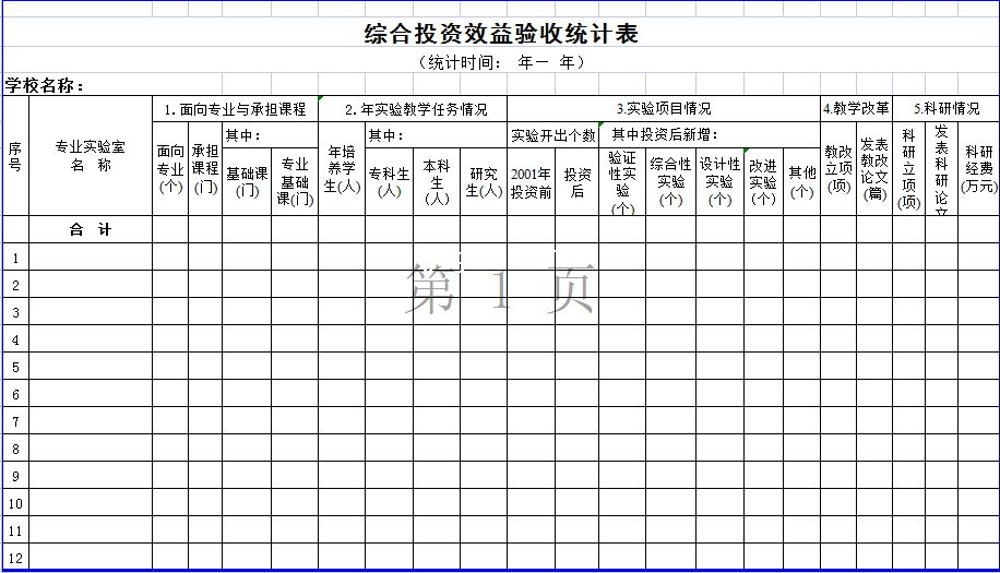 学校综合投资效益验收统计表-Excel表格