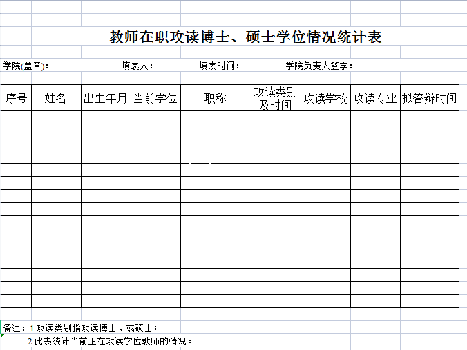 学院教师在职攻读硕士、博士情况统计表-Excel表格