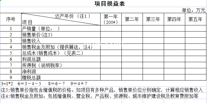 标题:项目损益表-Excel表格