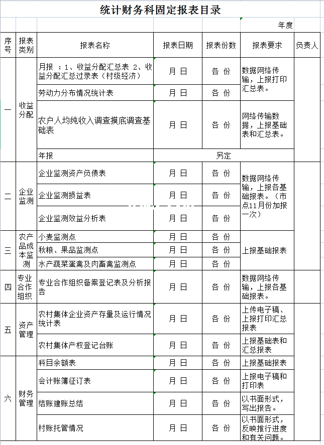 标题:统计财务科固定报表目录-Excel表格