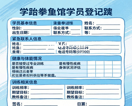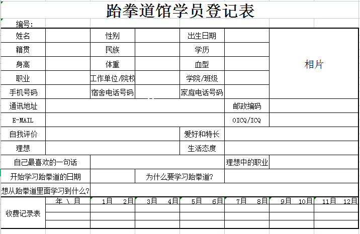 标题:跆拳道馆学员登记表-Excel表格