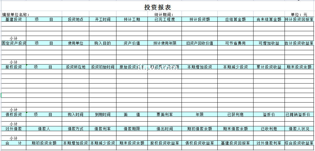 标题:投资报表-Excel表格