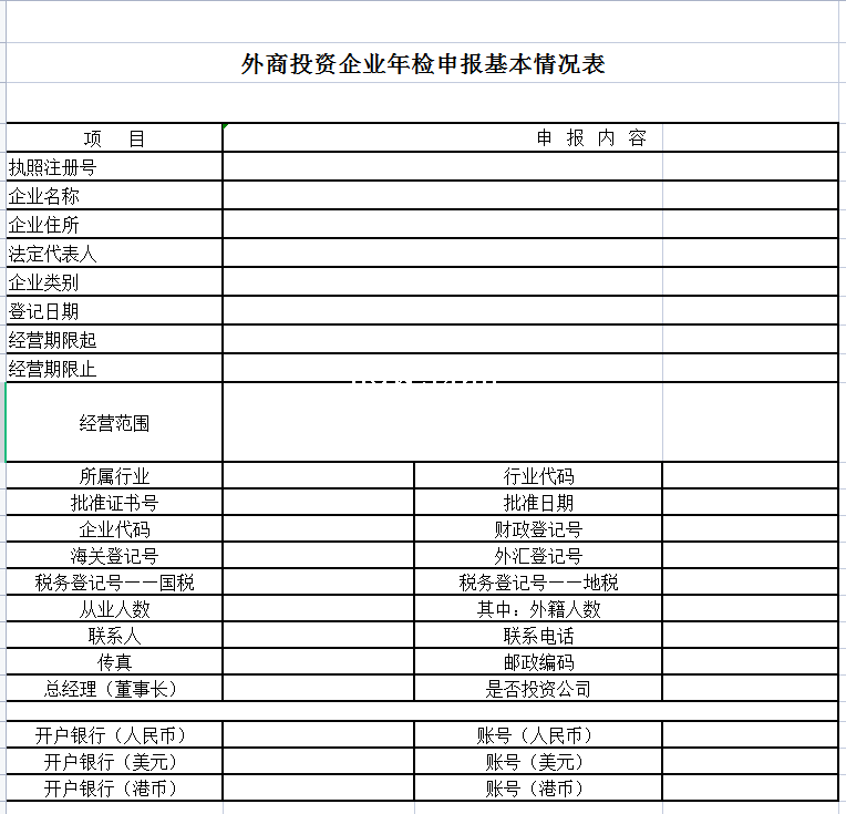 外商投资企业年检申报基本情况表-Excel表格