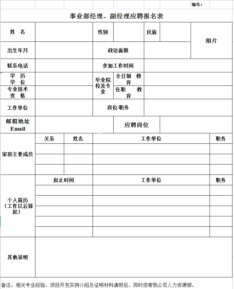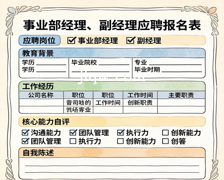 事业部经理、副经理应聘报名表-Excel表格