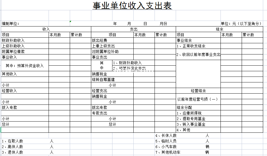 事业单位收入支出表-Excel表格