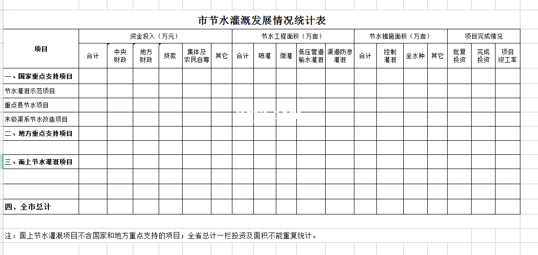 标题:市节水灌溉发展情况统计表-Excel表格