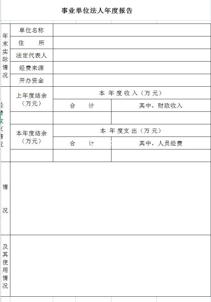 事业单位法人年度报告-Excel表格
