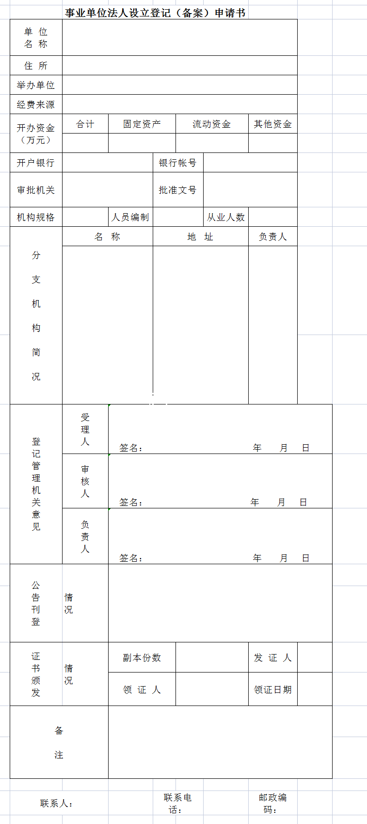 事业单位法人设立登记(备案)申请书-Excel表格