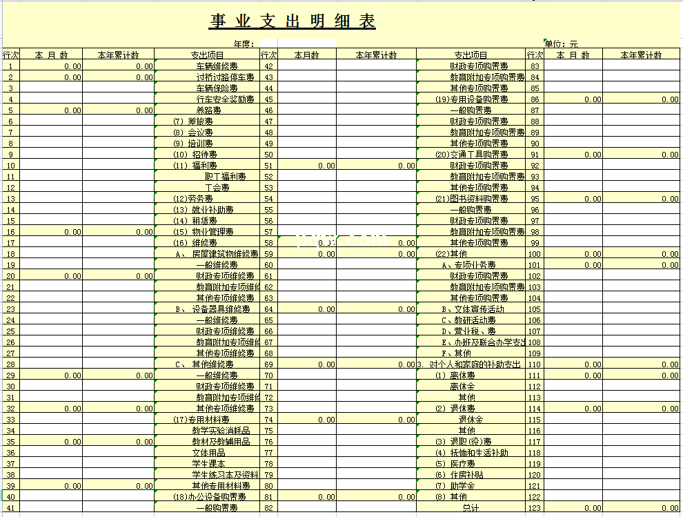 标题:事业支出明细表-Excel表格