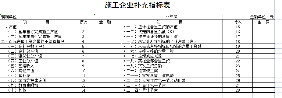 施工企业补充指标表-Excel表格
