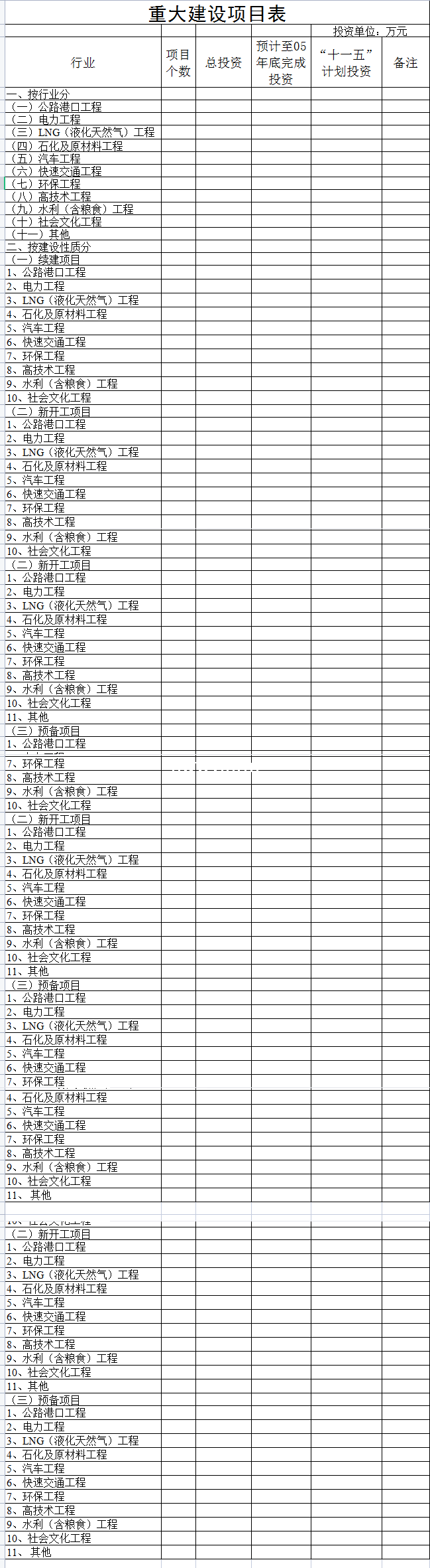 省“十一五”计划重大建设项目表-Excel表格