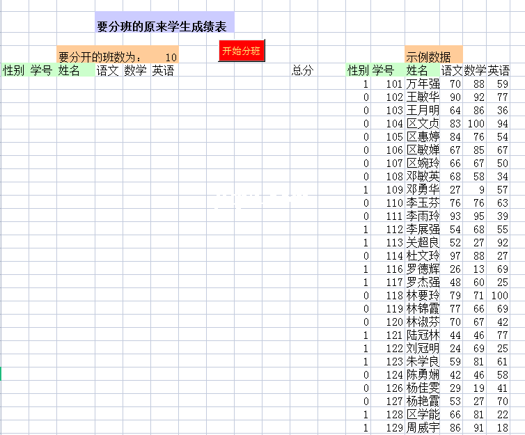 平衡各科分班系统-Excel表格