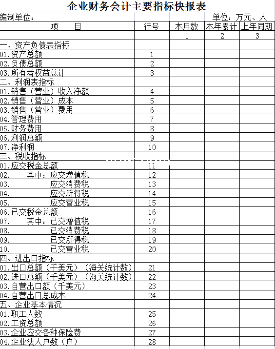 企业财务会计主要指标快报表-Excel表格