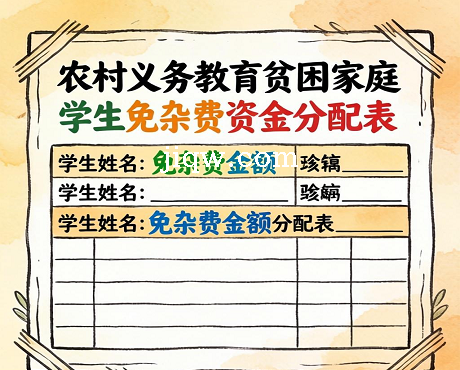 农村义务教育贫困家庭学生免杂费资金分配表-Excel表格