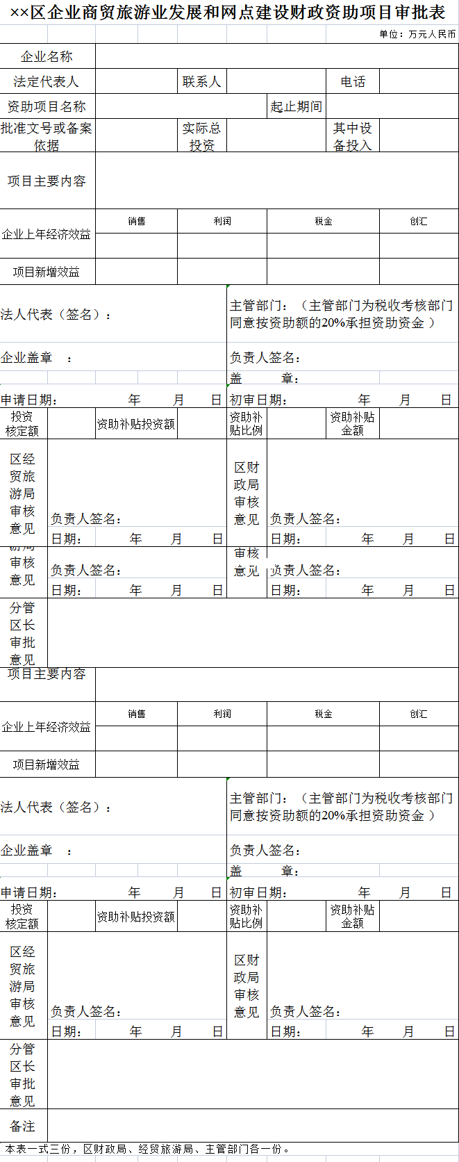 企业商贸旅游业发展和网点建设财政资助项目审批表-Excel表格