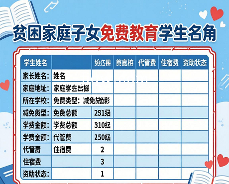 贫困家庭子女实行免费教育学生名册-Excel表格
