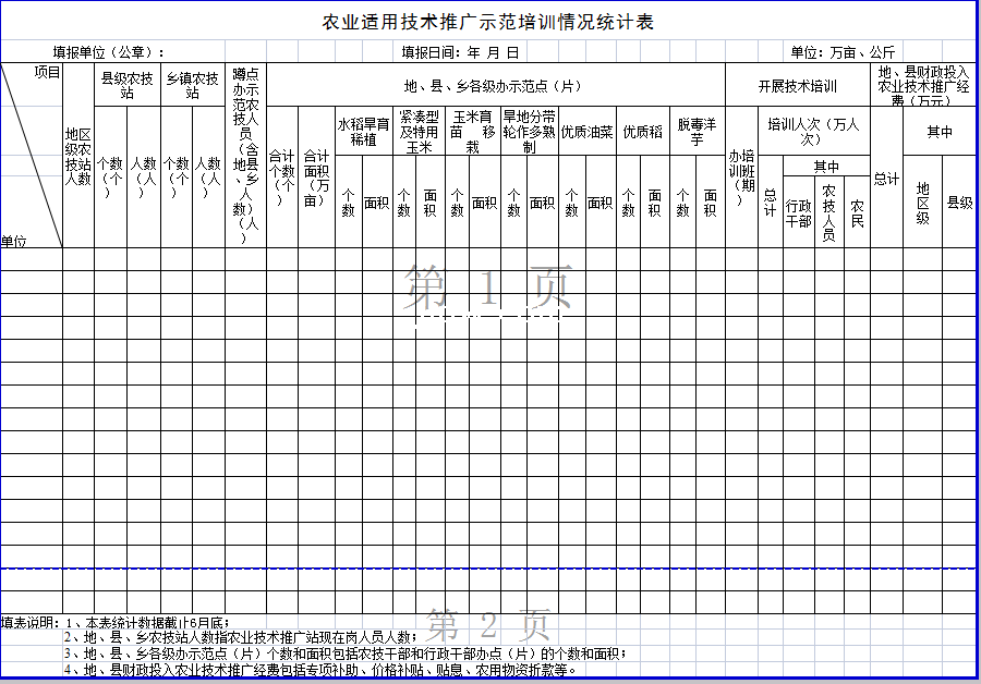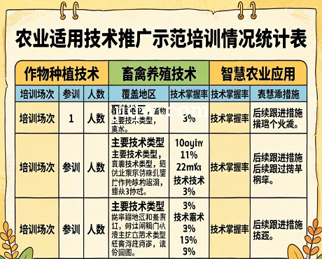标题:农业适用技术推广示范培训情况统计表-Excel表格