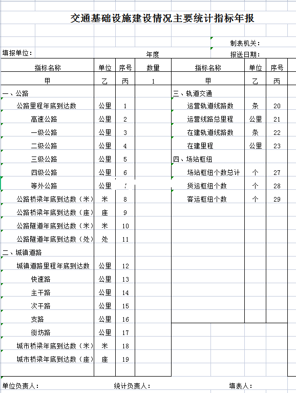 交通基础设施建设情况主要统计指标年报-Excel表格