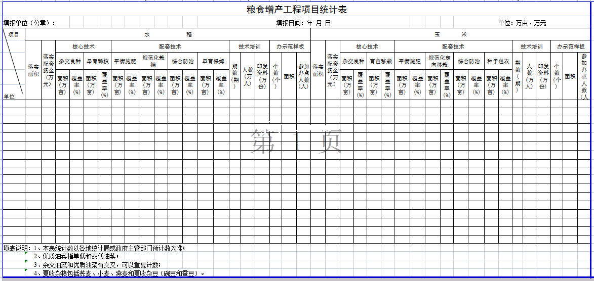 标题:粮食增产工程项目统计表-Excel表格