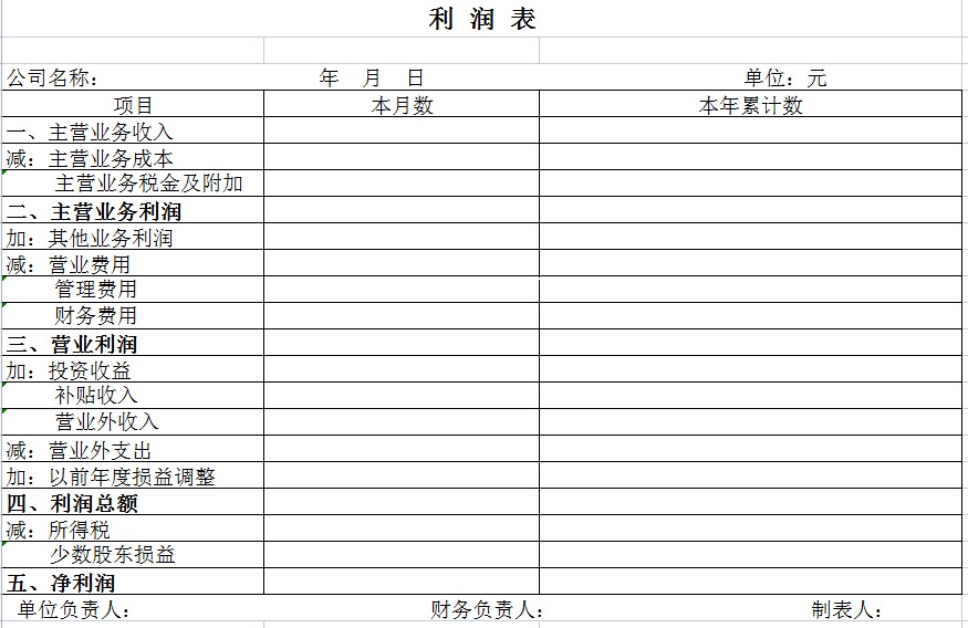 标题:利润表-Excel表格