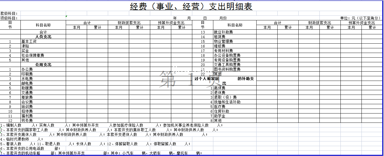 标题:经费(事业、经营)支出明细表-Excel表格