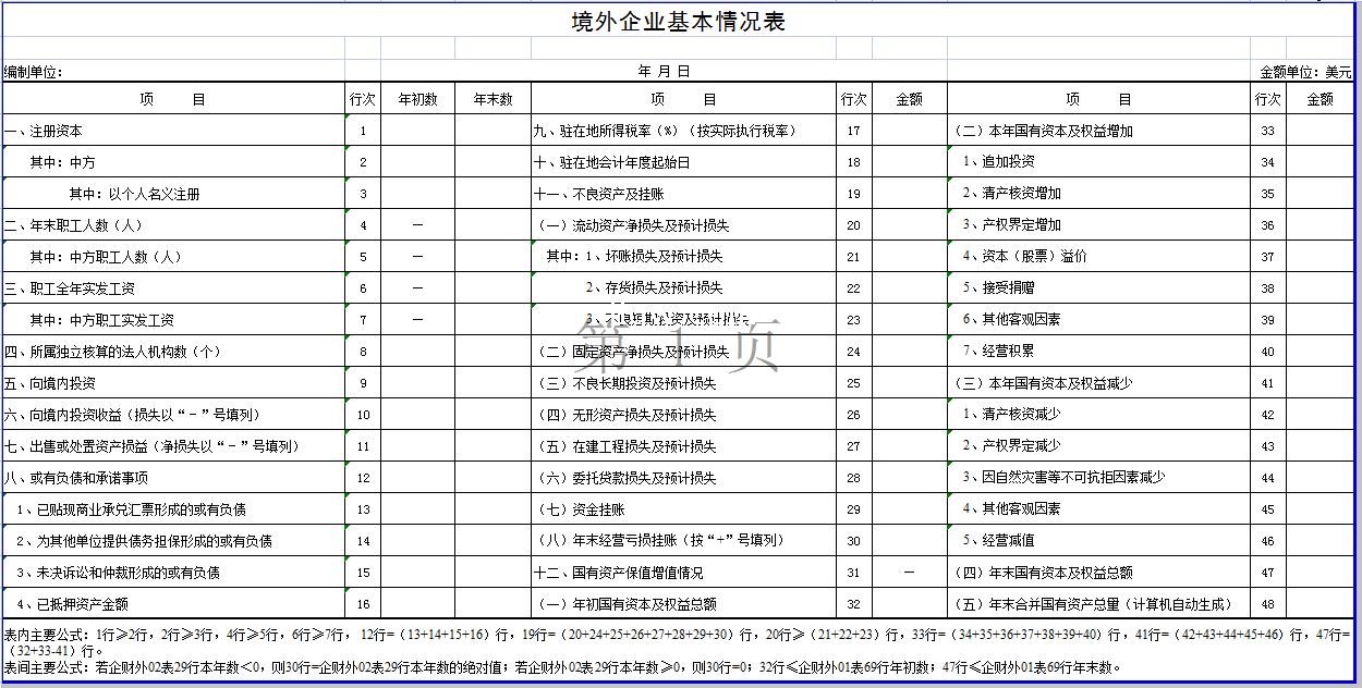 标题:境外企业基本情况表-Excel表格