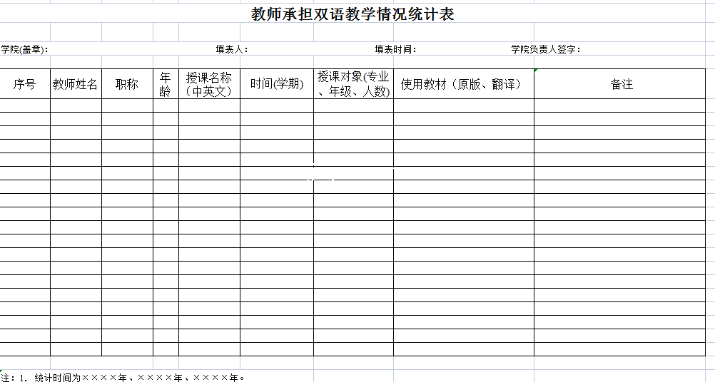 标题:教师承担双语教学情况统计表-Excel表格