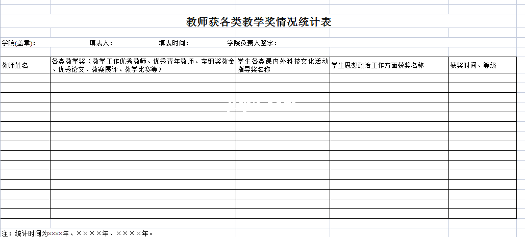 标题:教师获各类教学奖情况统计表-Excel表格