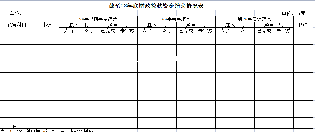 标题:截至××年底财政拨款资金结余情况表-Excel表格